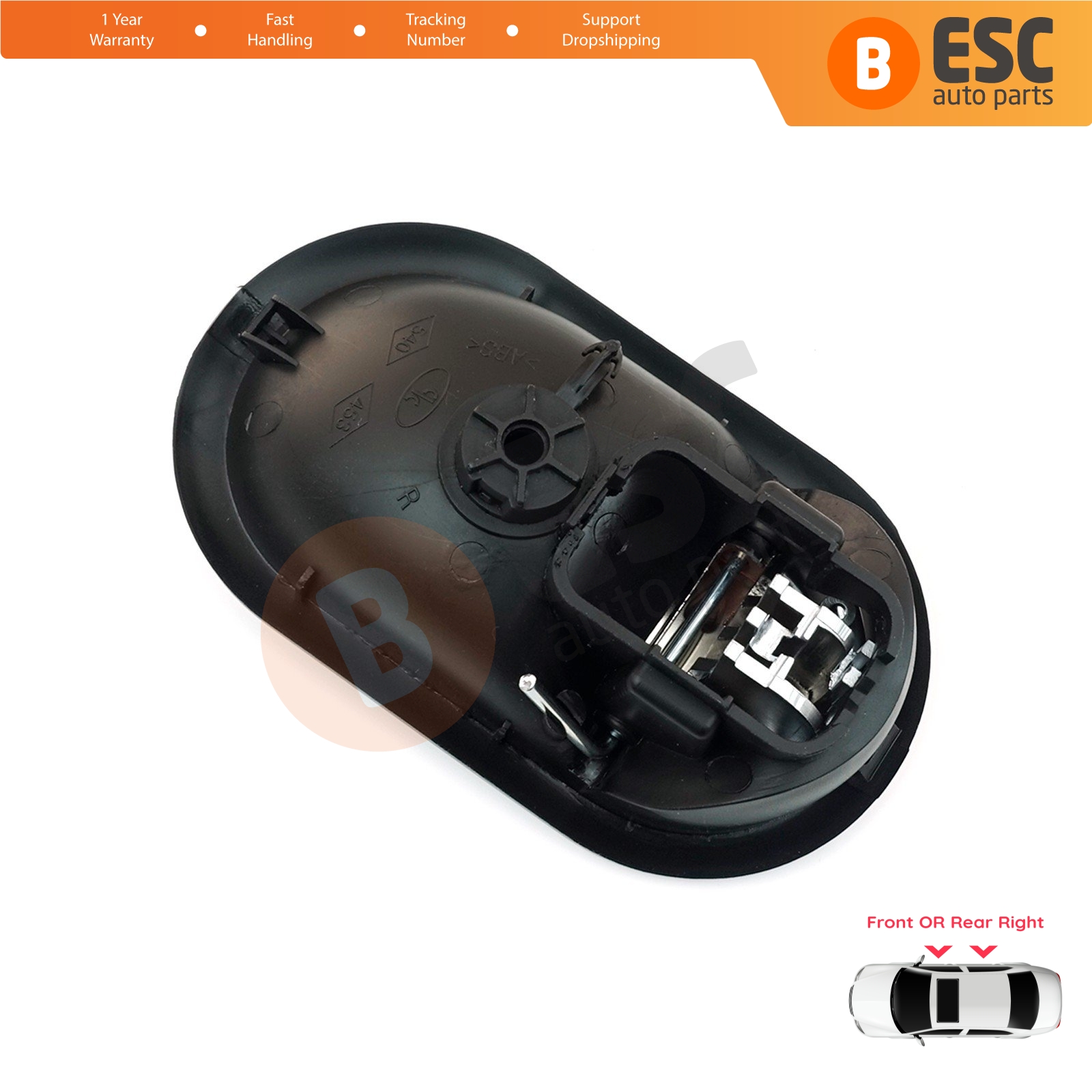 Interior Inner Door Opener Handle Front or Rear Right Door Black Color for Renault Scenic Megane Twingo Kangoo MK2 Clio Master MK3 Sandero Logan Duster MK1 Modus Movano B Citan W415 NV250 NV400 8200730863