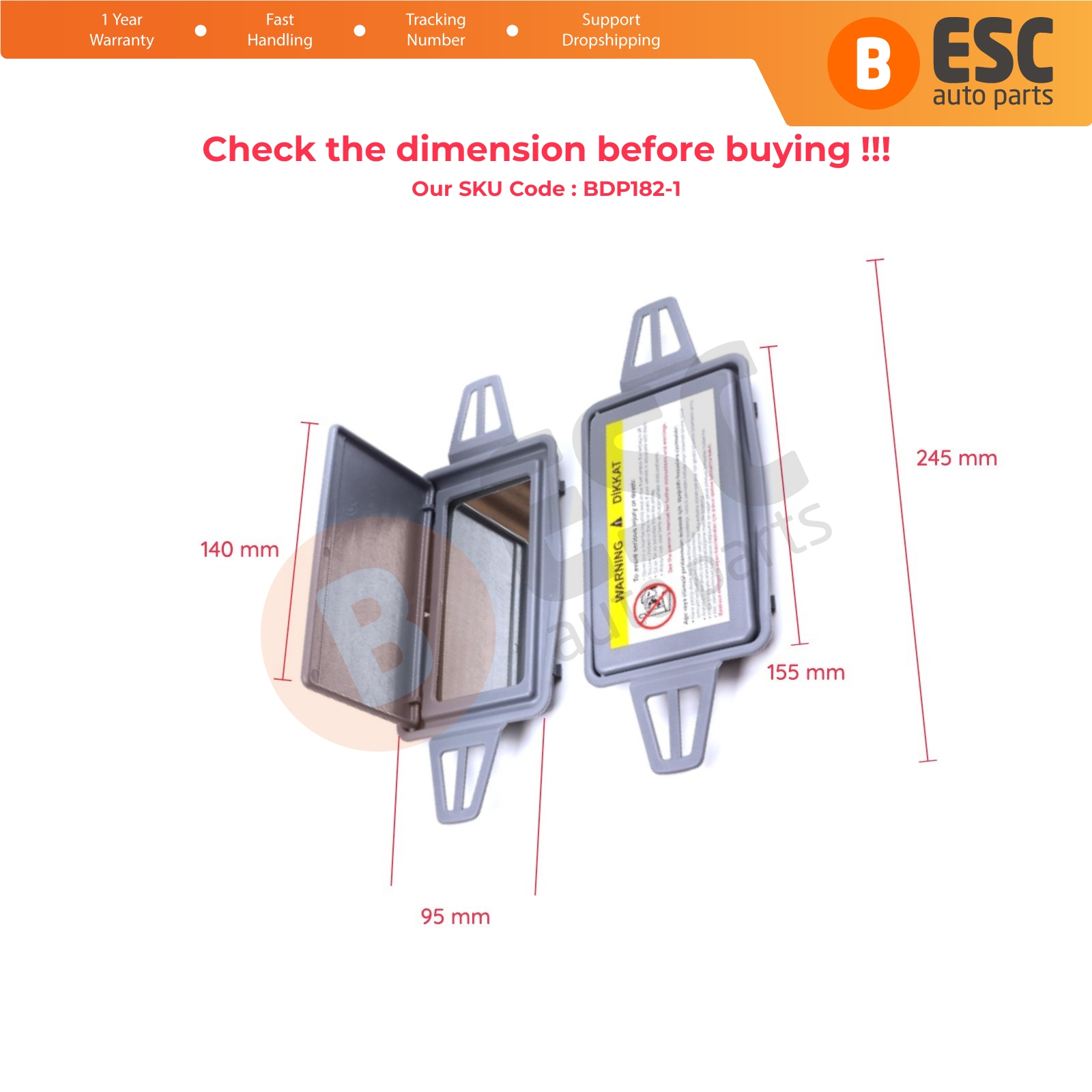 2 Pieces Sun Shade Visor Makeup Cosmetic Mirror Cover Left Right Set GRAY Color For Mercedes W210 W211 21081025101A21 2118100410