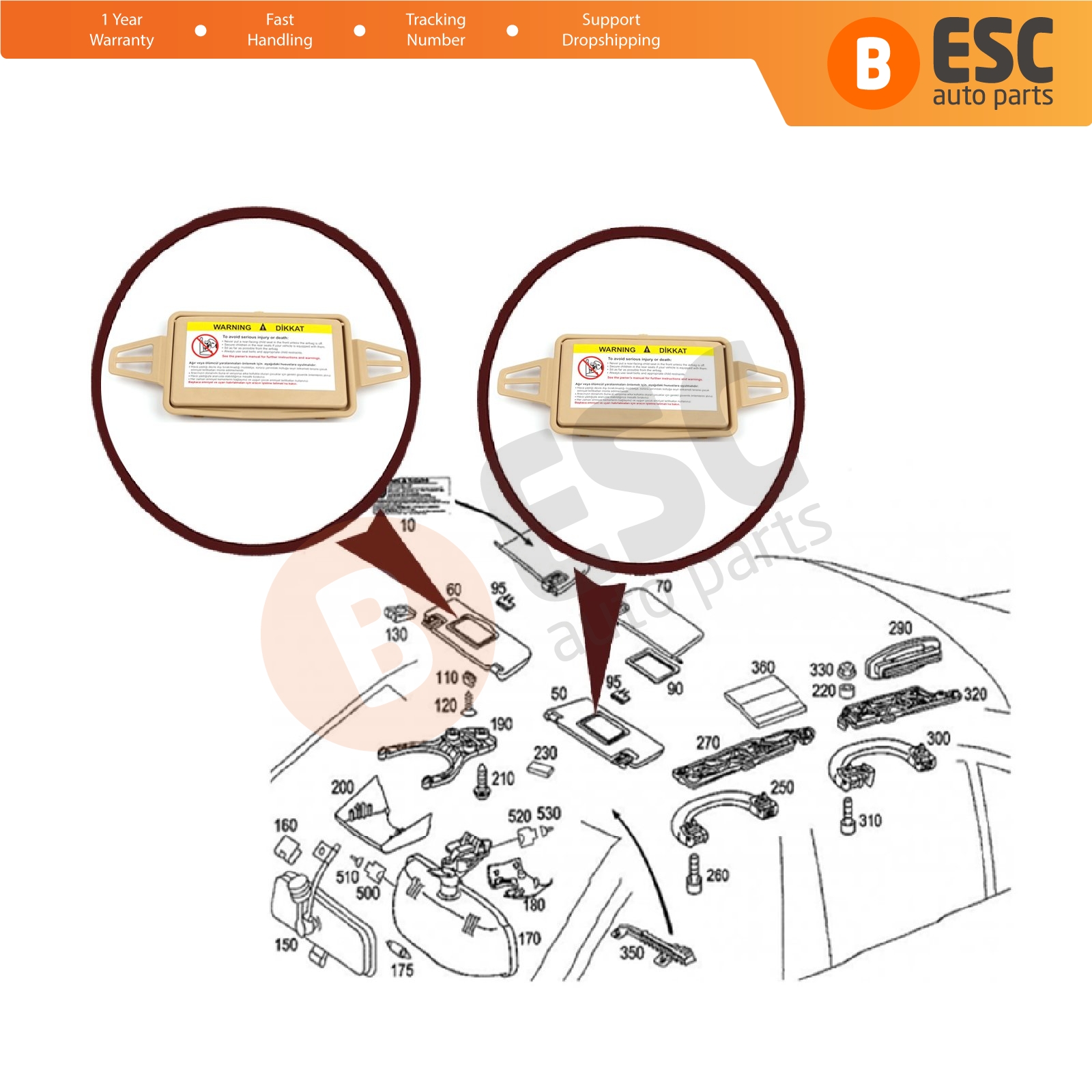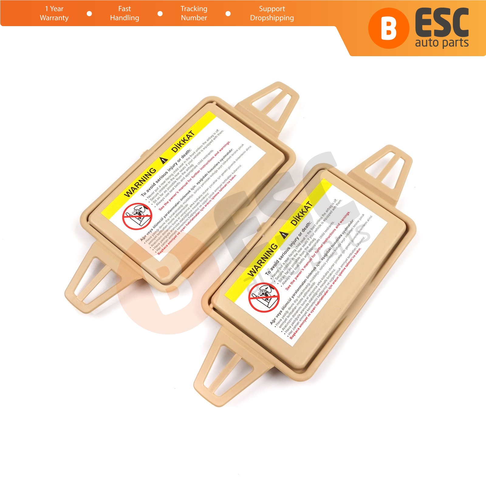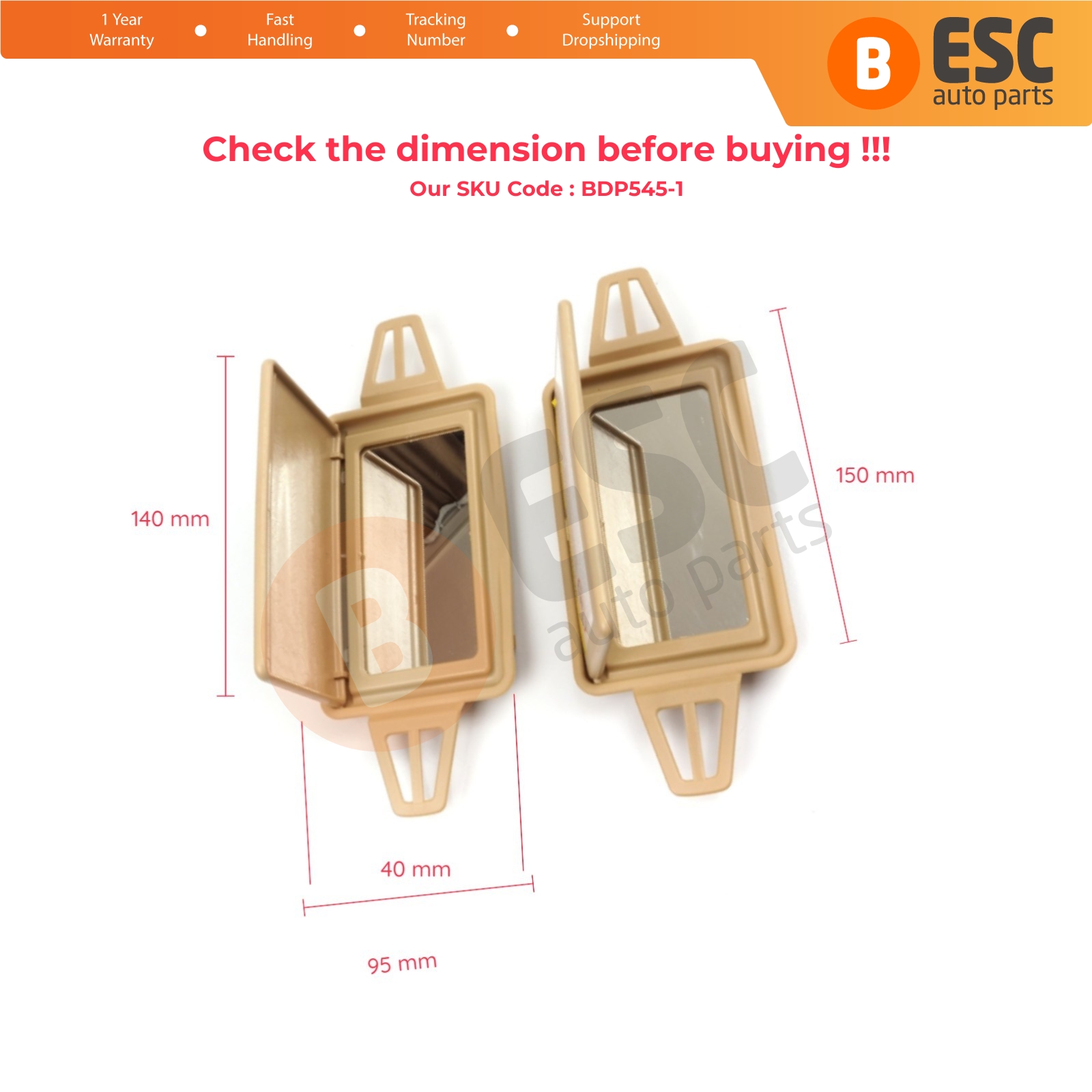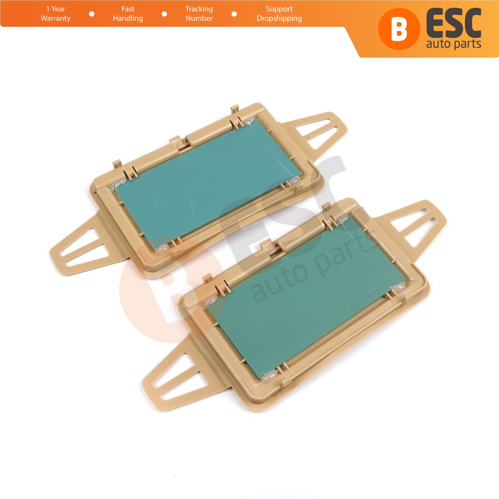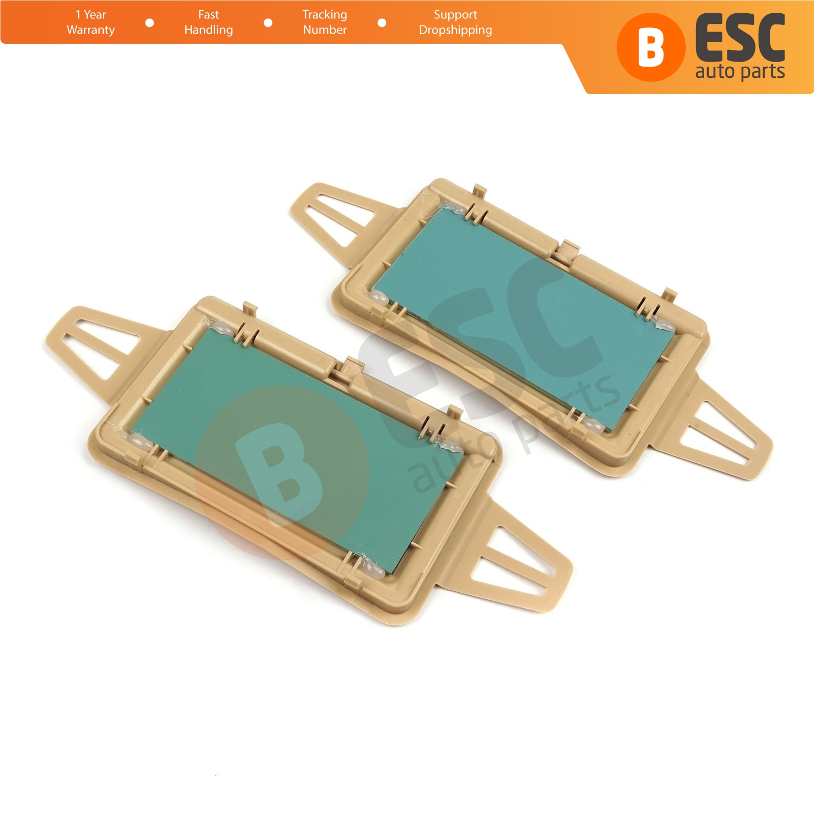 2 Pieces Sun Shade Visor Makeup Cosmetic Mirror Cover and Mirror Set TAN Color For Mercedes W210 W211 2108102510 2118100410