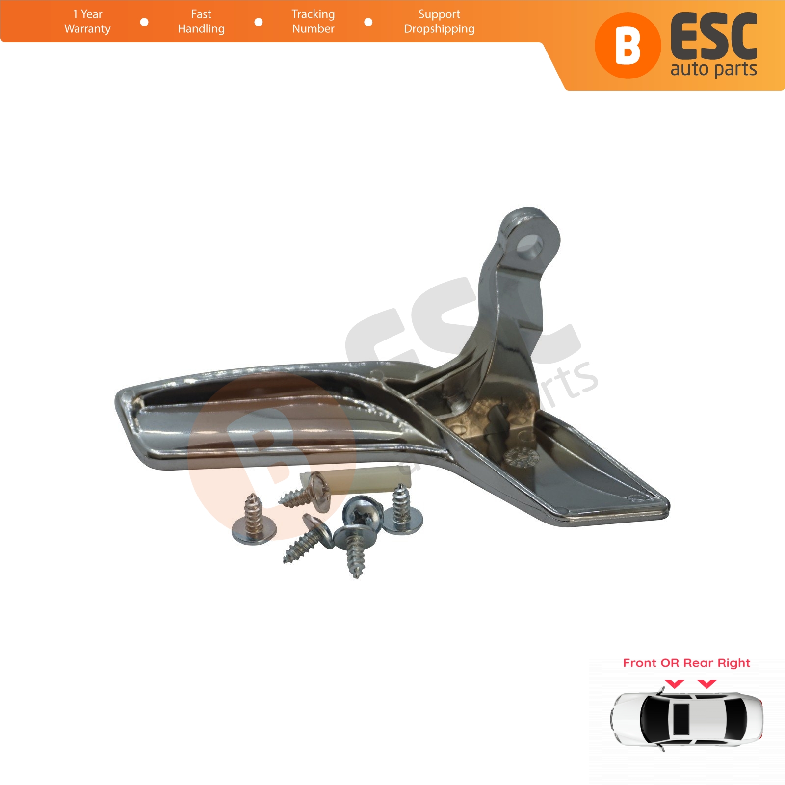 1 Piece Interior Door Handle Bright Chrome Plated Front OR Rear Right Side for Mercedes W204.