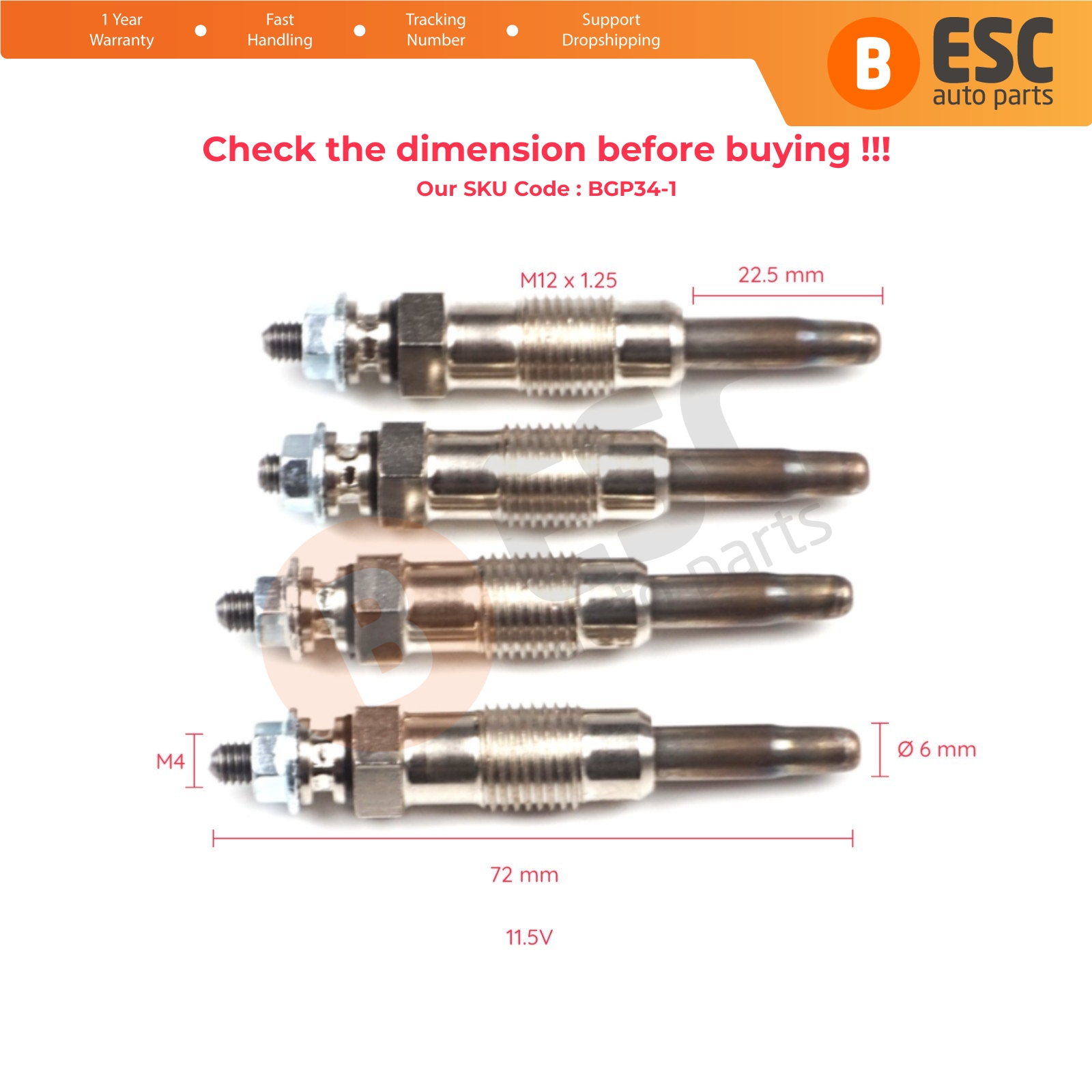 4 Pcs Heater Glow Plugs GX70, 11590001, GN858 for Mercedes Ssangyong Daewoo.