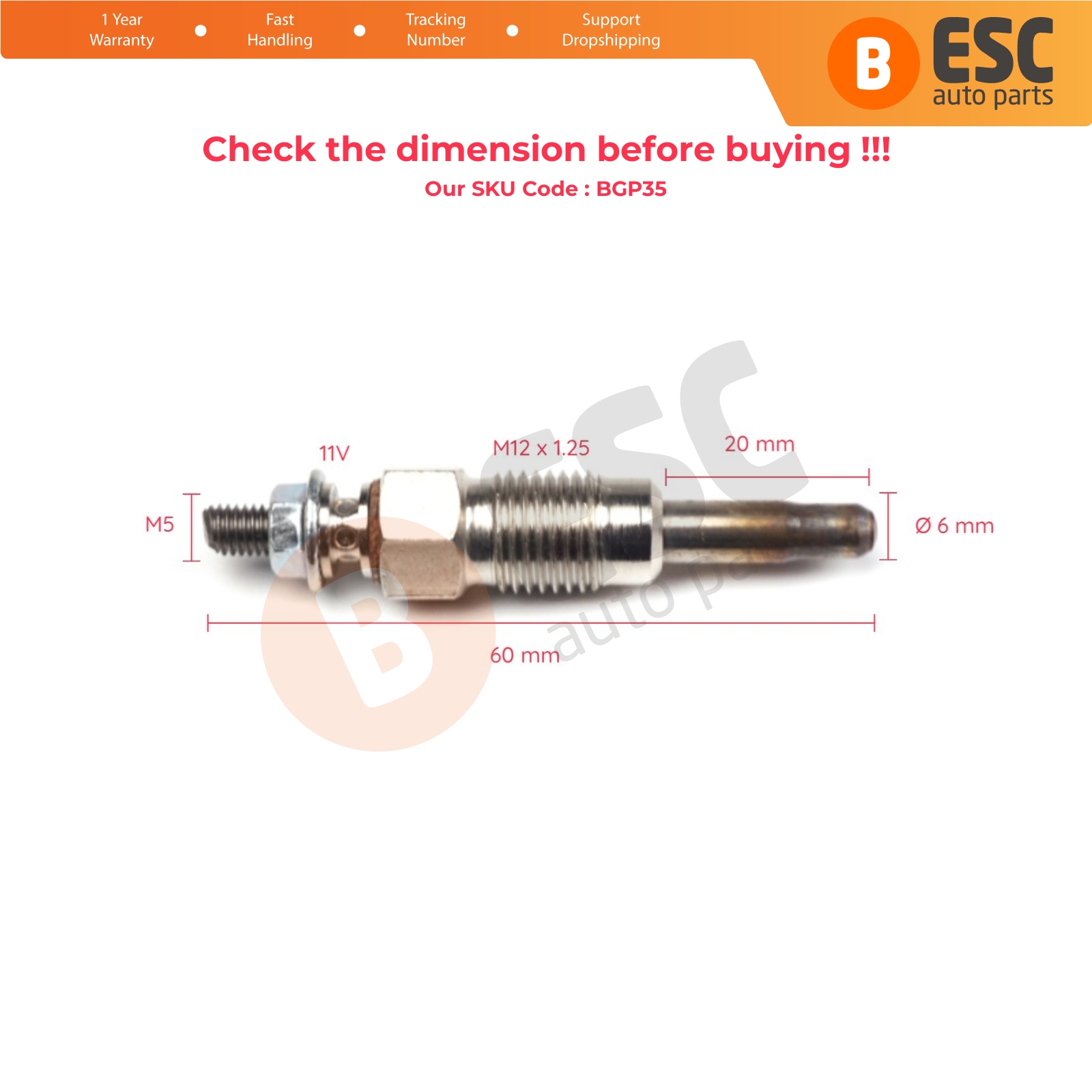 1 Piece Heater Glow Plugs GX59, N0190811, 0100226173 for Audi Volvo VW Skoda Seat.