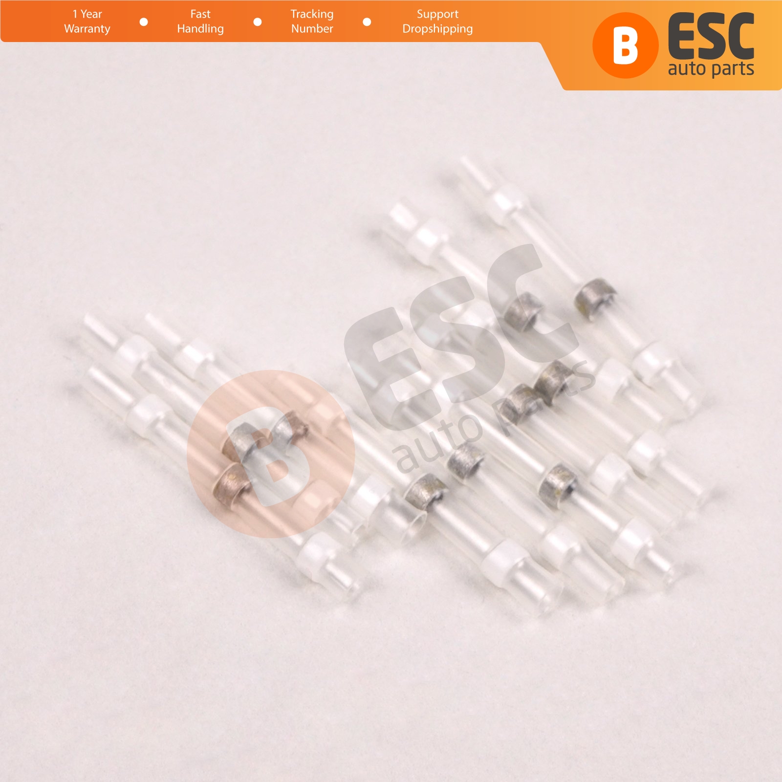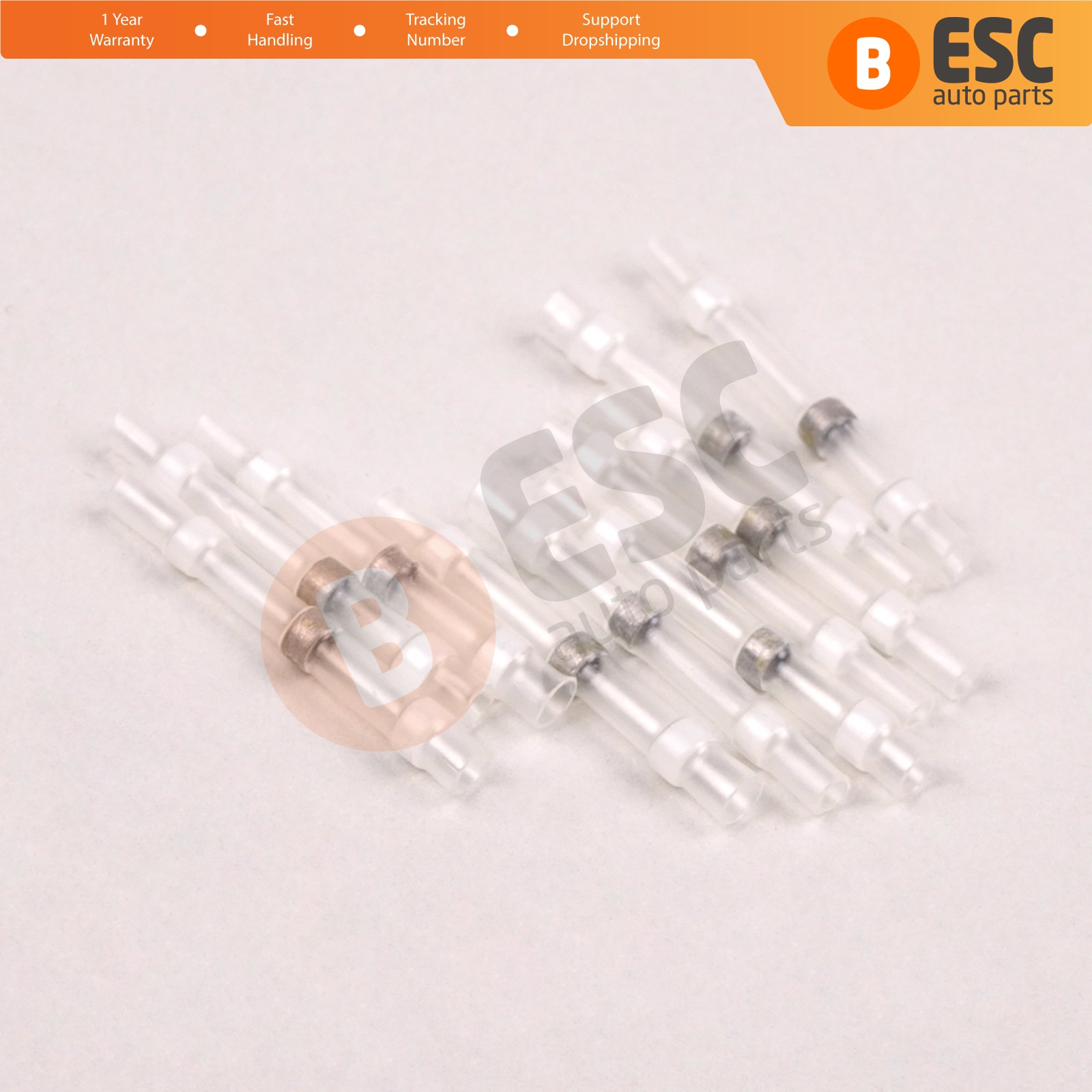 10 Pieces Heat Shrinkable Crimp&Solder Sleeves Butt Connectors for 0,1-0,5 mm² Cable; Transparent White; Lenght:24 mm.