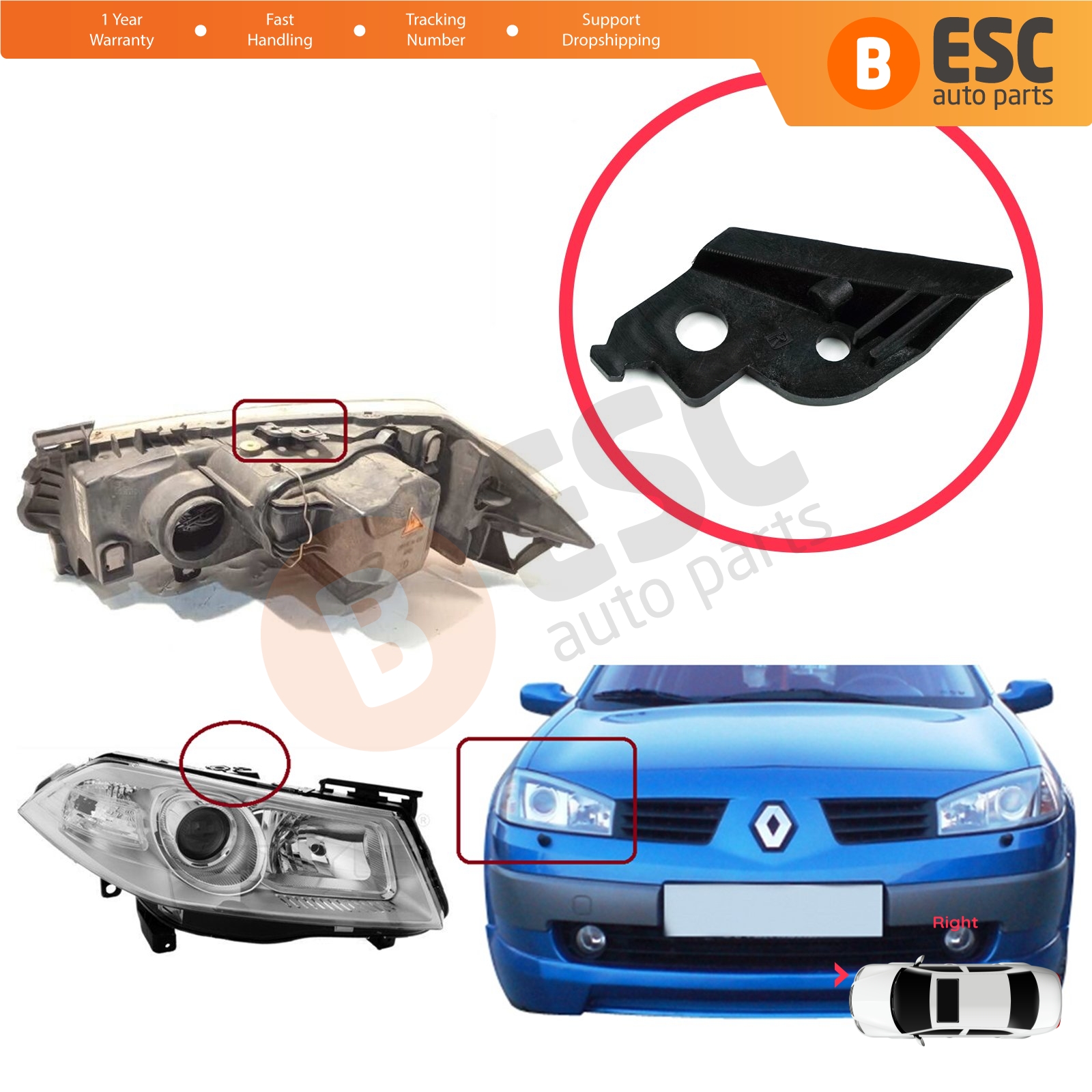 Car Headlight Headlamp Housing Repair Mount Holder Bracket Tab Clips Right Side for Renault Megane MK2 2002-2008 7701063220