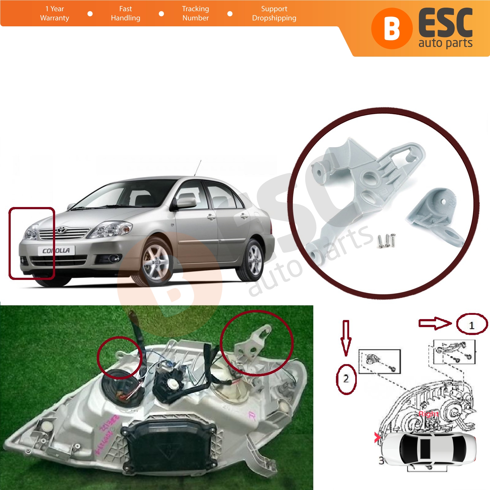 Car Headlight Headlamp Housing Repair Mount Holder Bracket Tab Clips Kit Right Side for Toyota Corolla MK9 E120 E130 Fielder Allex Runx 2000-2006 811451E710