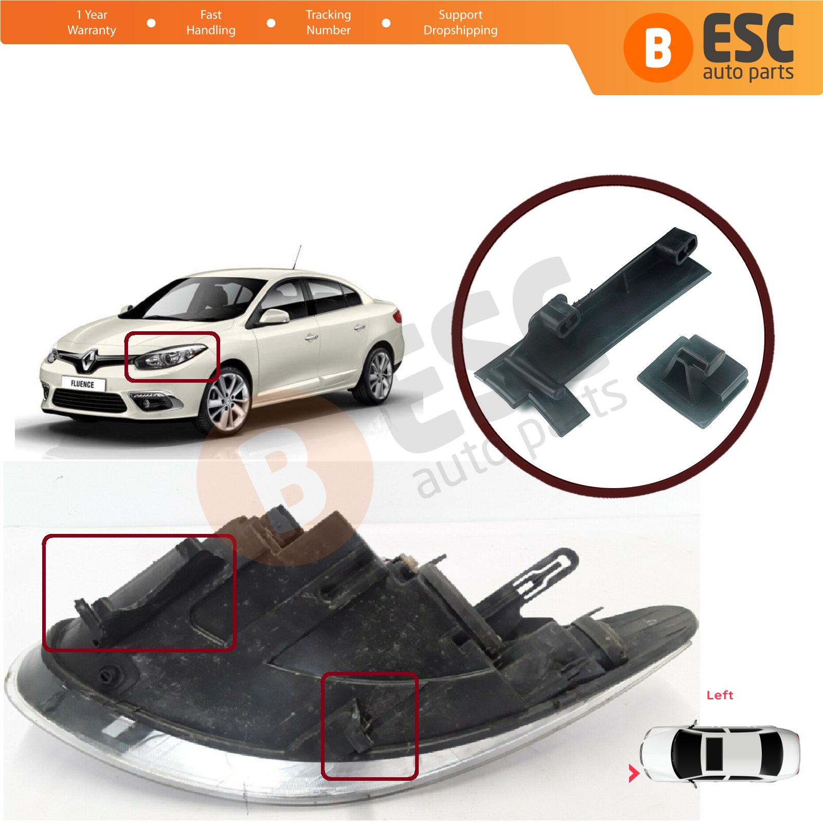 Car Headlight Headlamp Housing Repair Mount Holder Bracket Tab Clips Kit Left Side for Renault Fluence L3 L30 Z.E. 2009-2020 260607771R