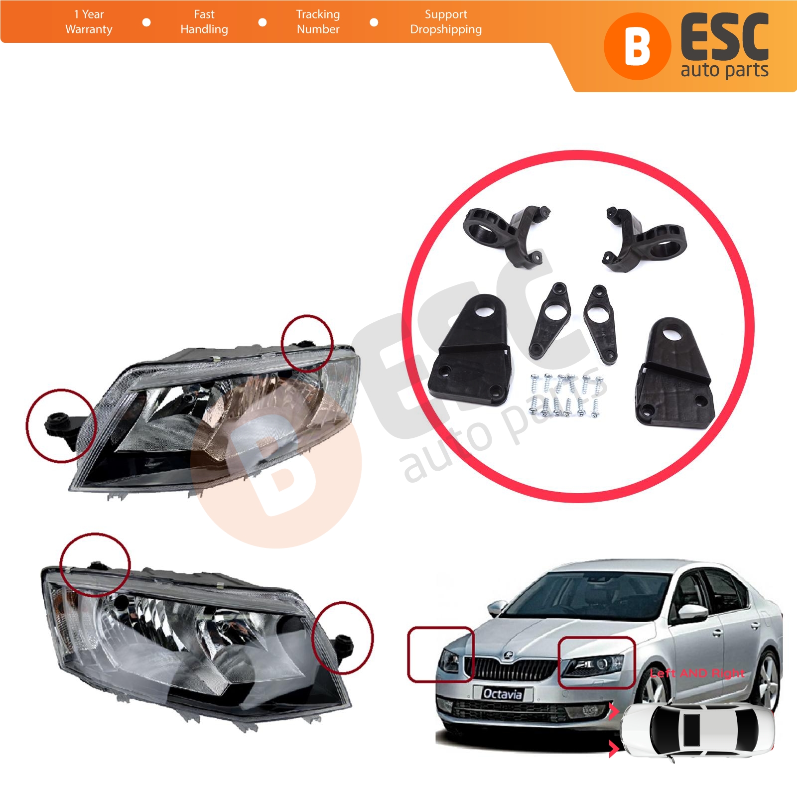 Car Headlight Headlamp Housing Holder Repair Mount Holder Bracket Tab Clips Kit Right and Left Side for Skoda Octavia MK3 5E 5E5 5E6 5E3 NL3 NR3 2012-2019 5E0998225 5E0998226