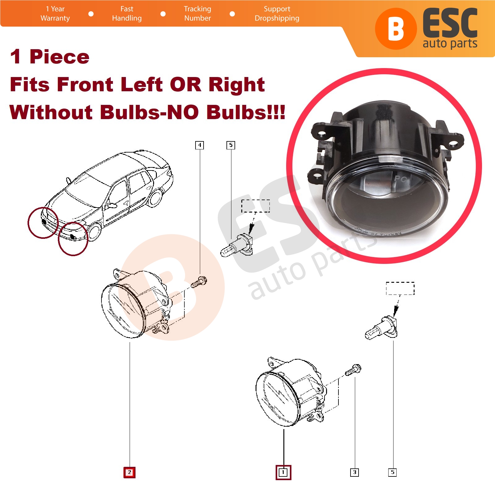 Car Front Bumper Auxiliary Fog Driving Light Foglight Right or Left 8200074009 W/O BULB for Renault Dacia Scenic Megane Master Laguna Thalia Logan Duster