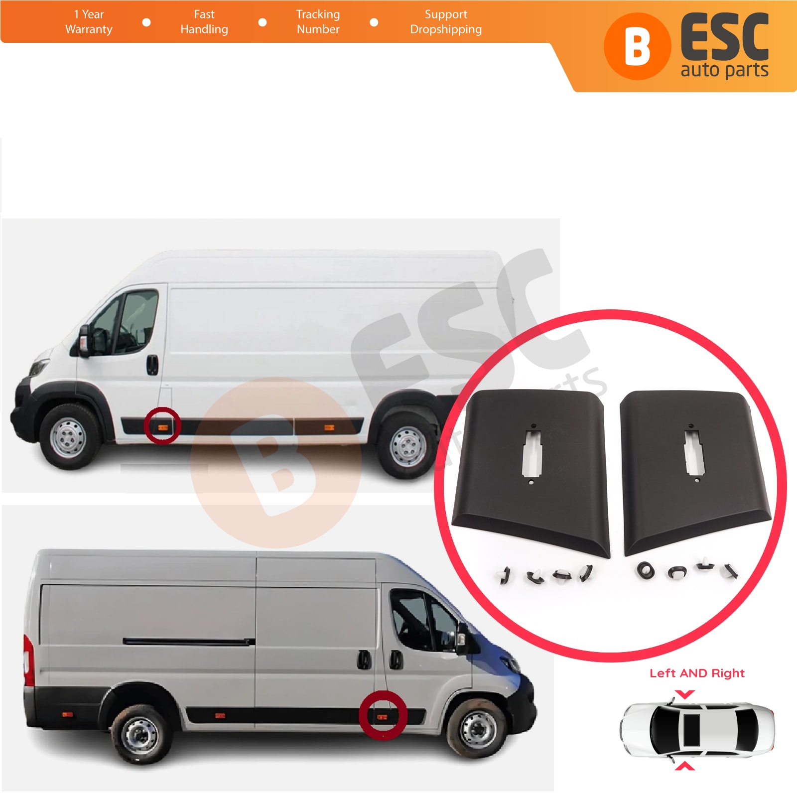 Left and Right Side Body Moulding Panel Pillar Trim Rub Strip with Clips Black Color for Fiat Ducato MK3 Boxer 250 Jumper Relay MK2 Daily 2006-2024 8547W5 8547W3