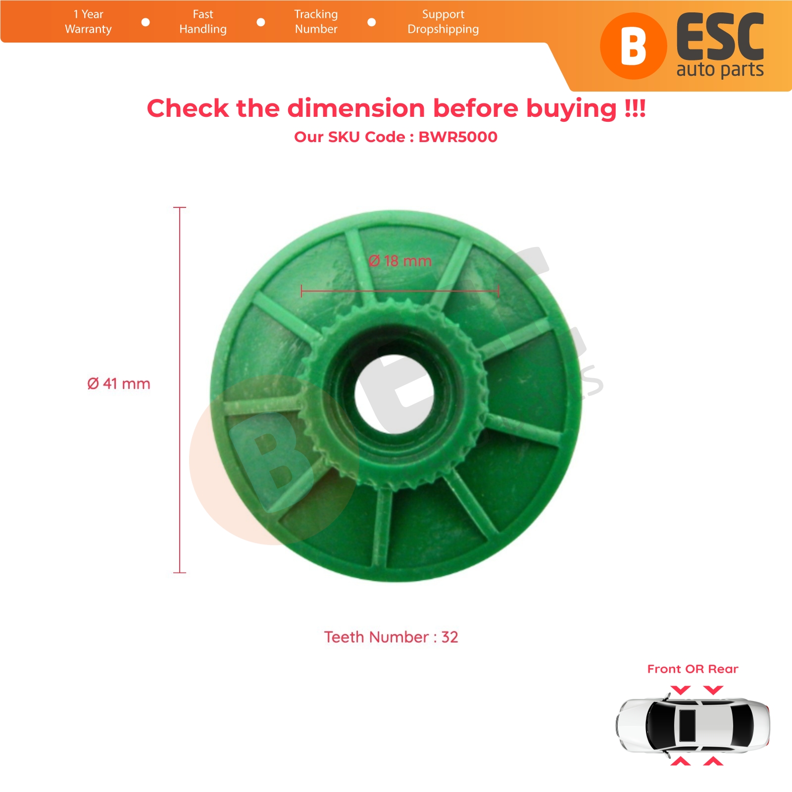 Window Lifter Regulator Motor Cog Roller Repair Gear Front Rear Left or Right Door for VW Polo 4 T6 Amarok Caddy 2 3 Golf 5 6 Jetta 4 UP! Skoda Fabia 1 Octavia 2 Citigo Roomster 5J