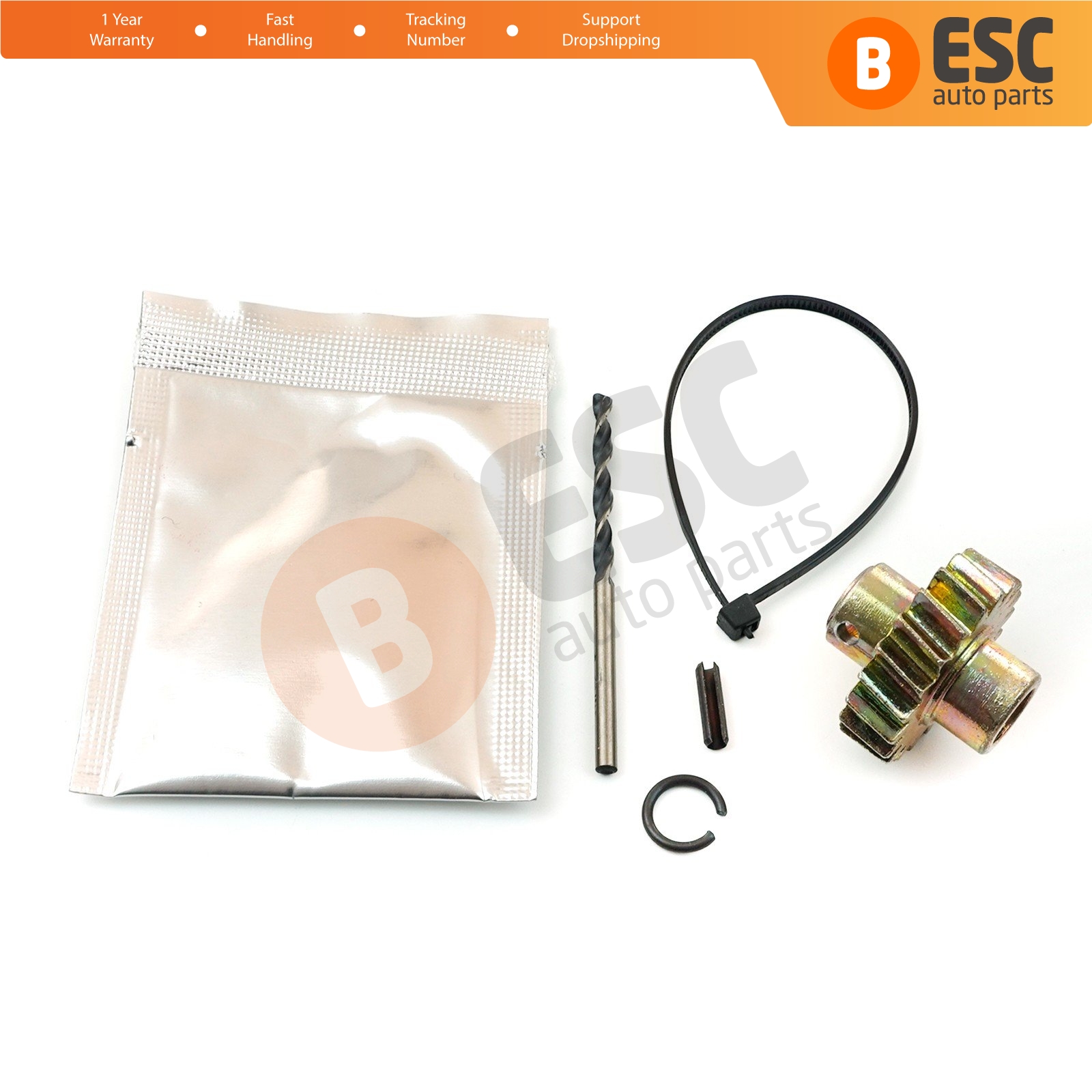 The gear is made of Brass. The brass gear works in both motor types (short and long spindle). The package consists of Gear, Lubricant, Adapter Sleeve Pin and Drill Bit.